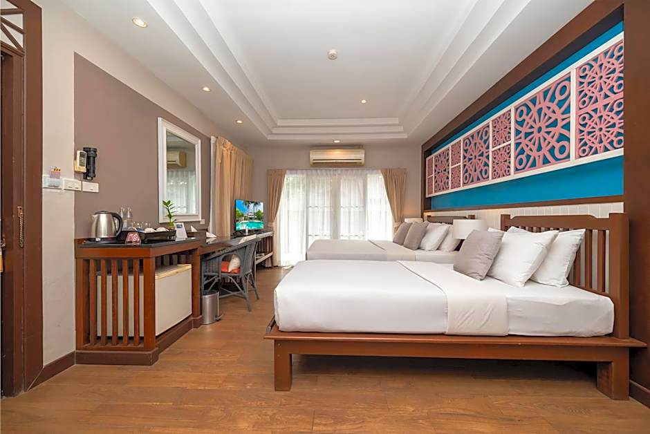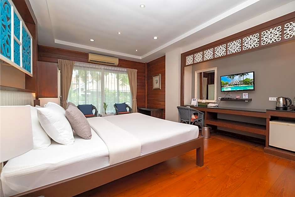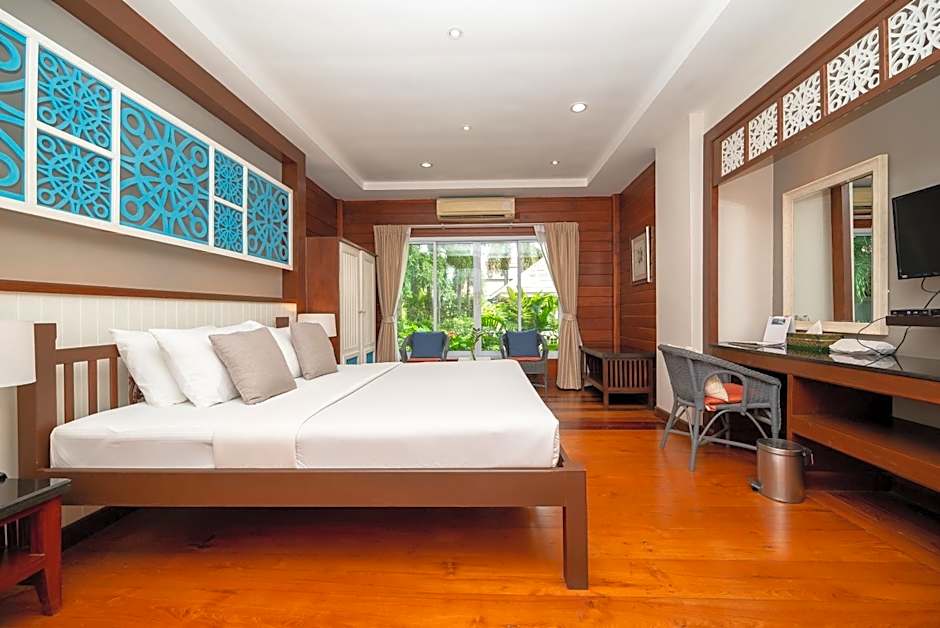 The spacious twin/double room provides air conditioning, a tea and coffee maker, a balcony with garden views as well as a private bathroom featuring a bath.